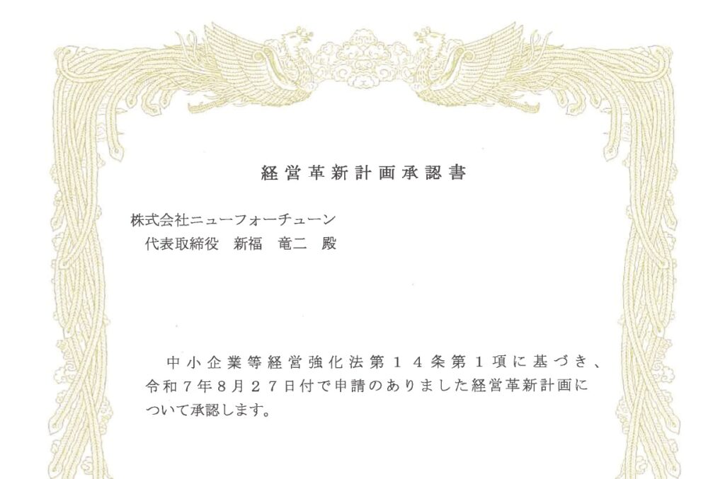 大分県経営革新計画に認定されました