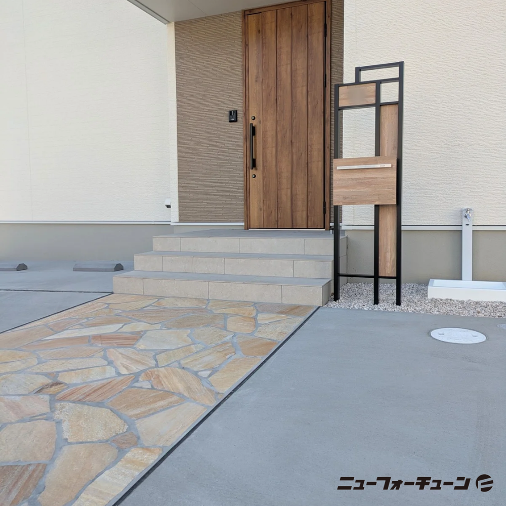 施工実績:大分市/新築外構工事 乱石貼り仕上げ 2026年2月4日 施工実績 大分市で新築外構工事を行いました。 駐車場の一部に乱石貼りを取り入れることで、シンプルなコンクリートにアクセントをプラス✨玄関アプローチとのつながりも意識し、お家全体の雰囲気に馴染むデザインに🏠 職人がひとつひとつ丁寧に仕上げる乱石貼り🚙毎日使う場所だからこそ、『実用性+デザイン性』を大切にしました🍃 ″魅せる外構″も是非ニューフォーチューンへお任せください✨ インスタグラムでも画像公開中✨ Instagram紹介記事はこちら