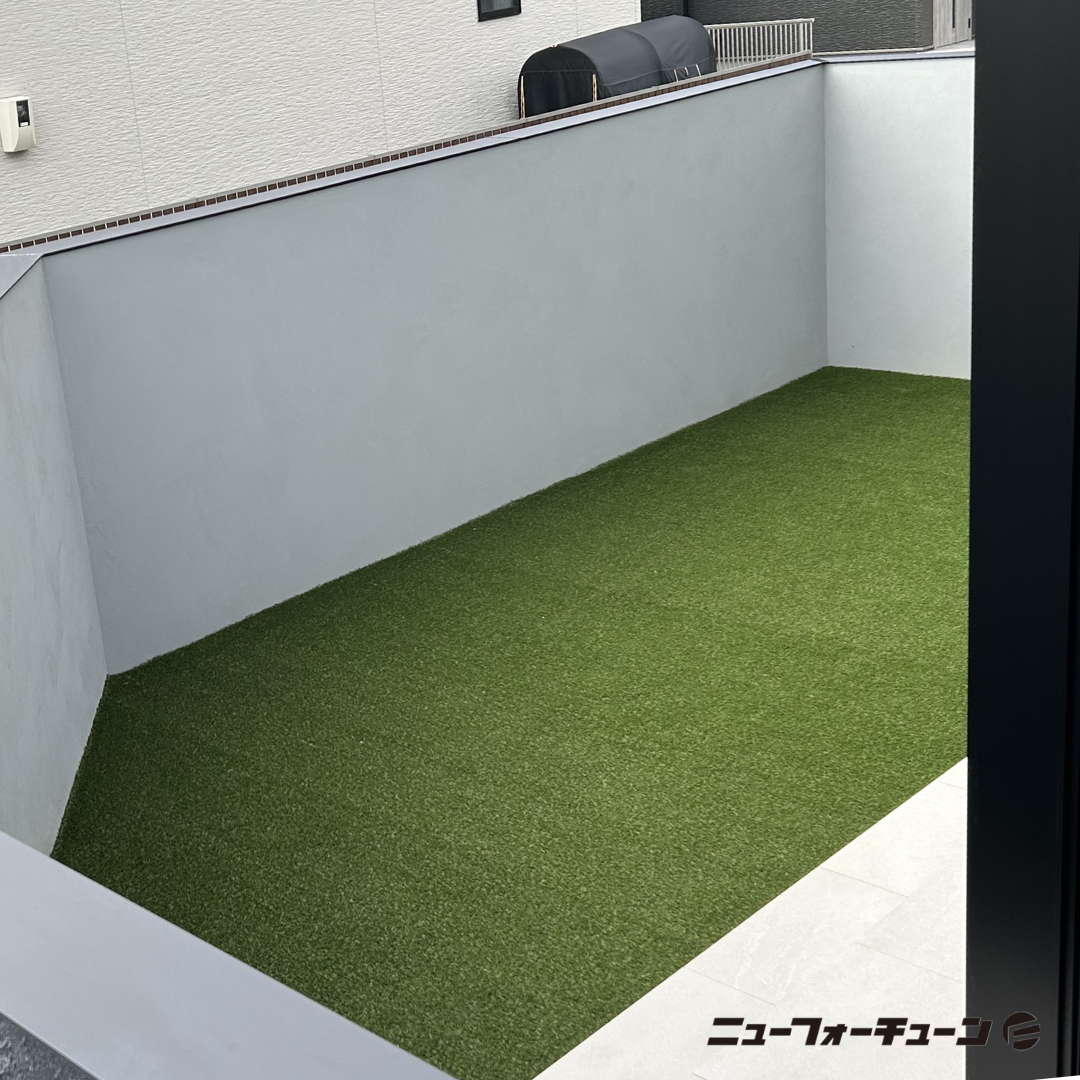 お庭はお子様も愛犬も、のびのび過ごせるお庭一面の人工芝🍃